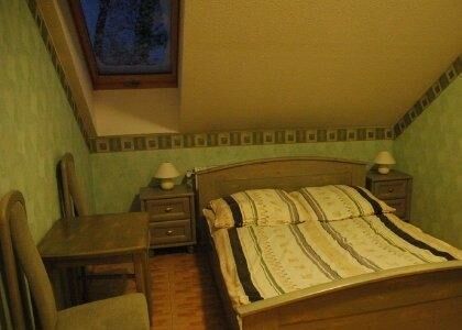 Poddasze- mieszkanie z dwiema sypialniami, salon z aneksem kuchennym, łazienka. Razem 52 mkw.