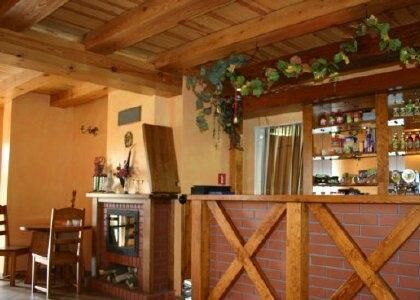 Piwnica- 2 sale, jedna z kominkiem, zaplecze kuchenne, WC, kotłownia. Razem 210 mkw.